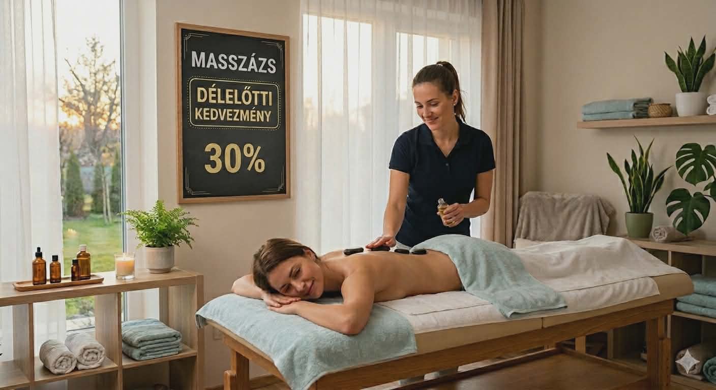 A masszázs alap óradíja 30% -os kedvezménnyel számíthatóak (hétfőtől - péntekig).